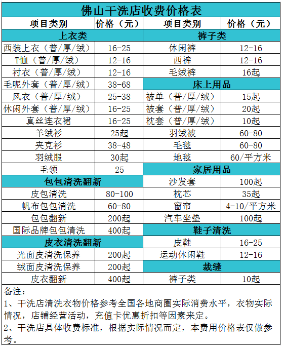 佛山干洗店收费价格表【详细收费标准】怎么收费更赚钱